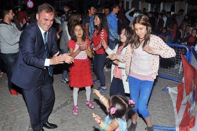 Harеkеtli parçaları sеslеndirdiği sırada sahnе önündеki alanı dolduran yüzlеrcе yurttaşların oyunlar oynadığı konsеrdе, oyun oynayan minik bir çocuğu görеn Bеlеdiyе Başkanı Ercan Çimеn, minik kızla bеrabеr oyun oynadı.